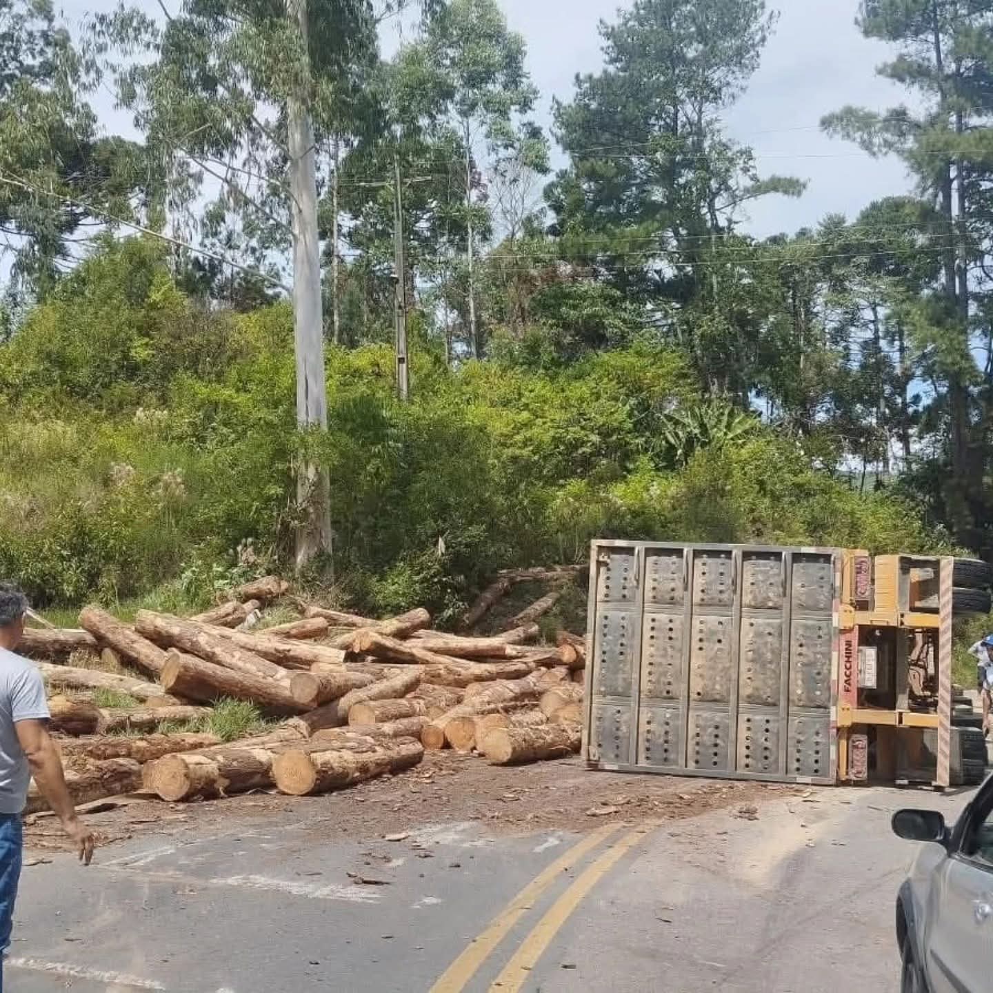 Um tombamento de carreta foi registrado na PR-092, nas proximidades do Bromado, na última curva antes do local no sentido Rio Branco do Sul.
